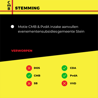Motie CMB & PvdA inzake aanvullen evenementensubsidies gemeente Stein verworpen